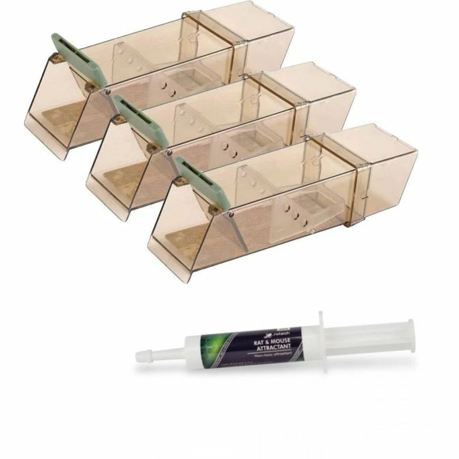 Inhoud: 3 Pest Stop Trip Traps + 30 gram Rotech lokmiddel voor muizen en ratten