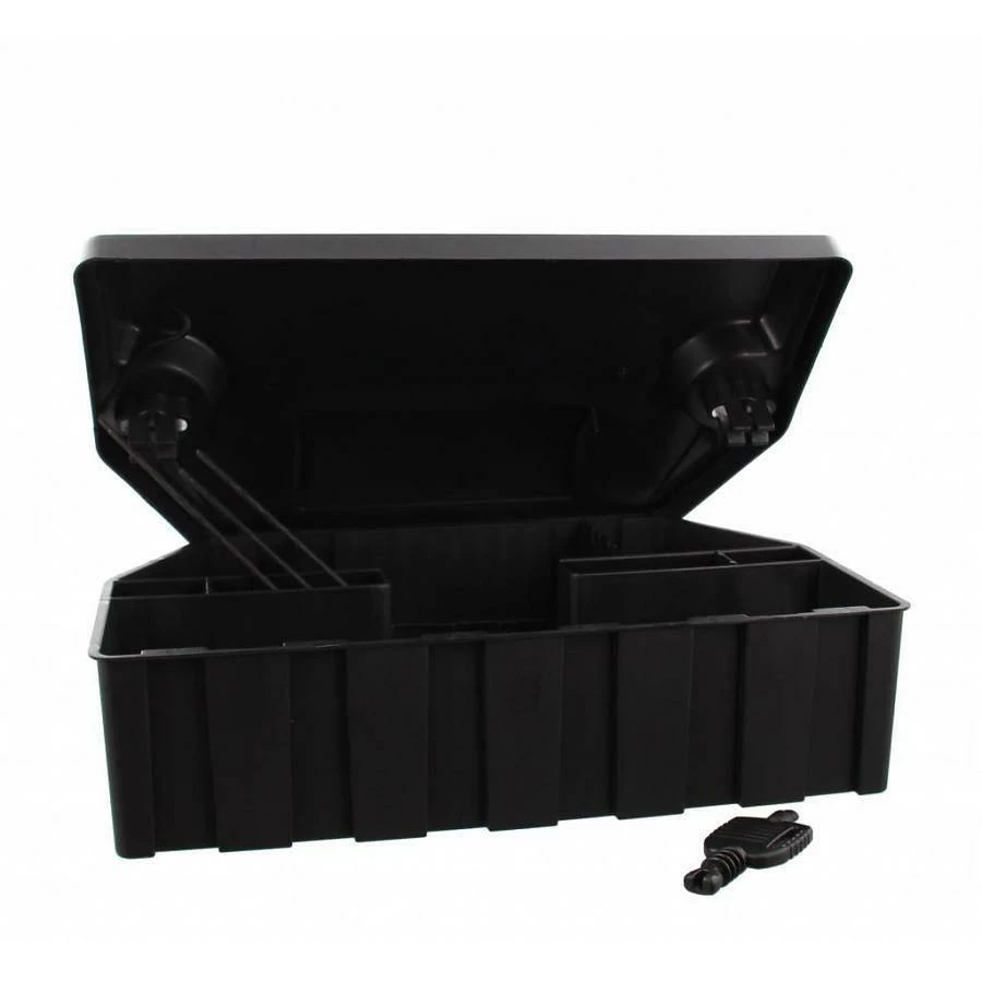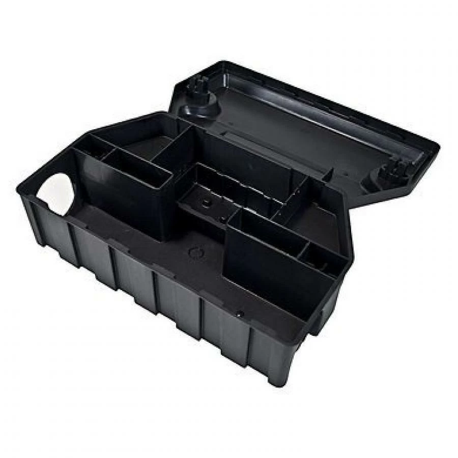 Deze grote stevige doos is zeer veelzijdig in het gebruik en weerbestendig. Naast dat een rattenklem stevig vastgezet kan worden kan de voerdoos ook gebruikt worden voor gif wat in een bakje worden gelegd die niet kan verschuiven, op stokjes geprikt kan worden of worden opgehangen aan het stangetje. De afstand tussen de ingangen en de klem is lang genoeg dat kinderen en huisdieren er moeilijk bij kunnen. De voerdoos kan alleen geopend worden met de meegeleverde sleutel.