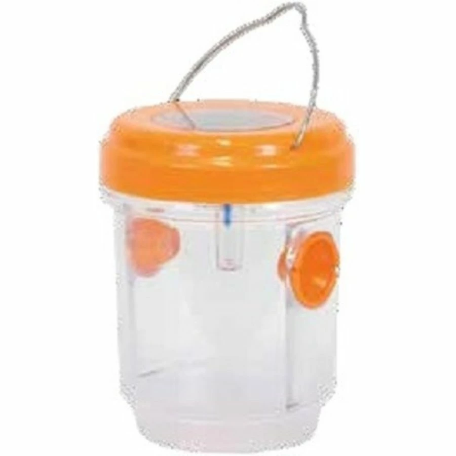 Een handige herbruikbare fruitvliegjesval in combinatie met een led lampje en een zonnepaneel in de deksel voor een optimale werking.