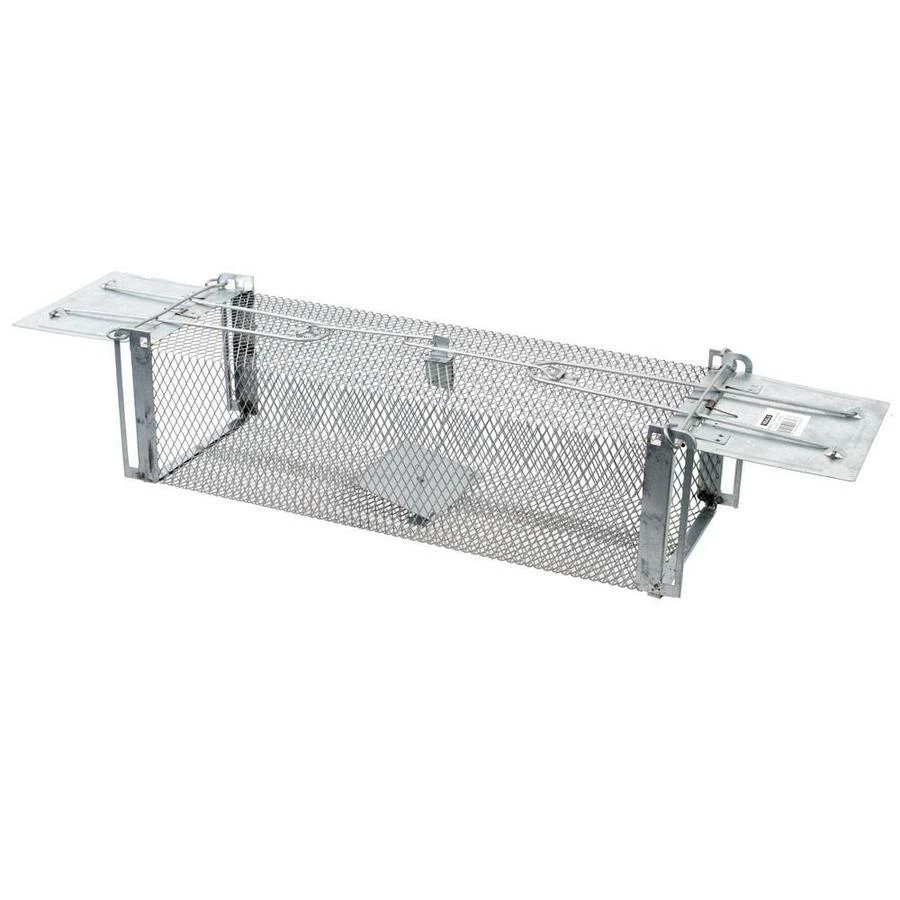 Degelijke stevige vangkooi voor ratten met ingangen. Wij raden aan altijd handschoenen te dragen bij het plaatsen van de diverse vangkooien, zodat er zo weinig mogelijk een menselijk geur aan de kooi komt.