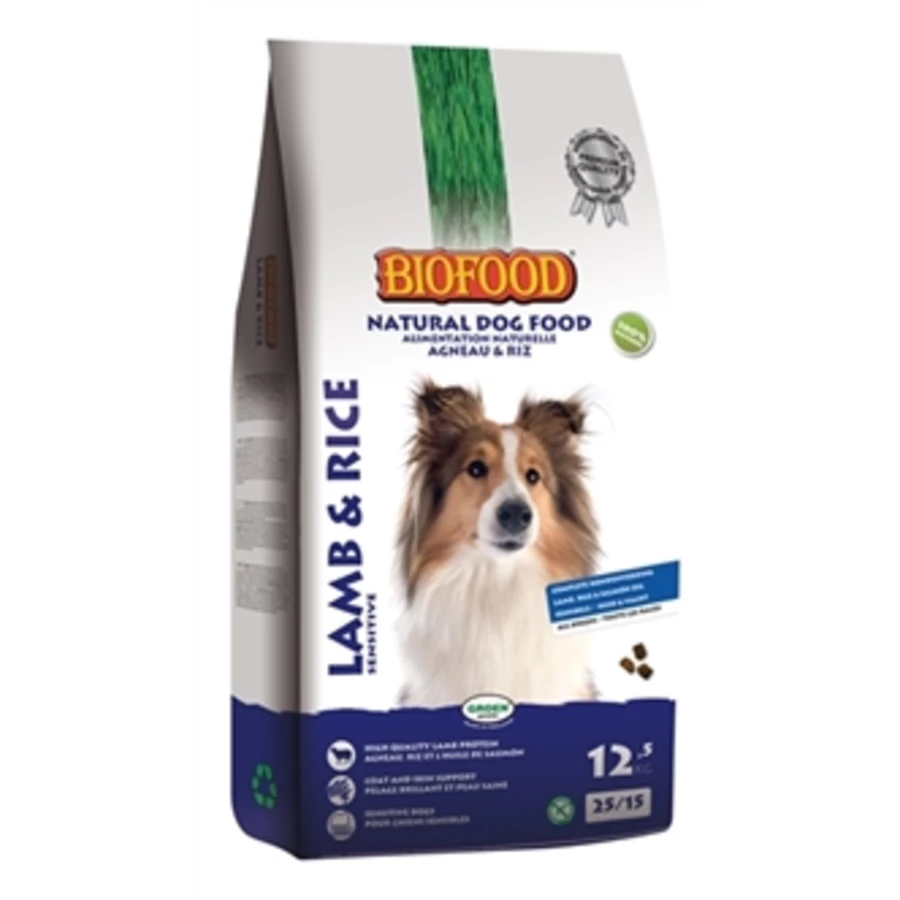 Biofood Lam/Rijst. Nederlandse topkwaliteit. Met hoogwaardige natuurlijke grondstoffen. Volledige licht verteerbare hondenvoeding voor volwassen honden. Met vers en gedroogd lam, zalmolie met essentiële omega 3 en 6 vetzuren, rijst, cranberry en glucosamine en chondroïtine.