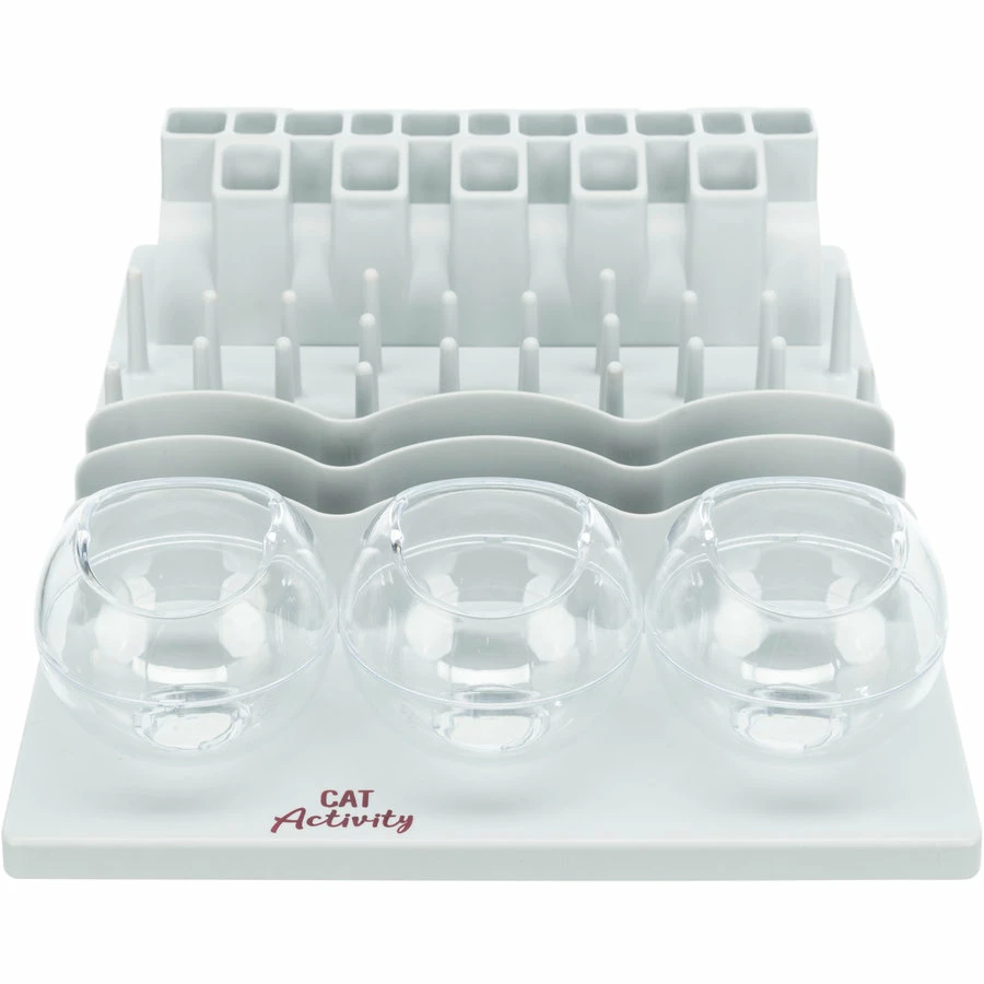 Fun Board XXL is het veelzijdige speelbord waarmee u uw kat kan voorzien van snacks en dagelijks voer. Dit bordspel heeft 5 verschillende spelmodules en is ontworpen door kattenexpert mevrouw Helena Dbalý. Naast het verstrekken van lekkernijen en speeltje, kan het ook worden gebruikt voor het dagelijks droogvoer van uw kat. Het bord is slipvast dankzij de rubberen voetjes en bevat een handleiding voor de training. Het spelbord is gemaakt van kunststof.