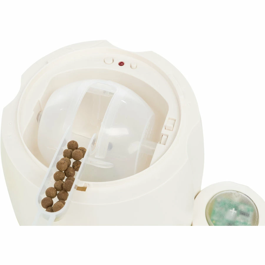 Memory Trainer 3.0 Strategisch Spel is een uitdagend beloningsspel en is te verstellen in moeilijkheidsgraad. De moeilijkheidsgraad kan worden opgeschroefd door drukknop en voerdispenser steeds verder uit elkaar te plaatsen, zelfs tot het plaatsen in verschillende ruimtes toe. Roterend reservoir binnenin de dispenser met verstelbare opening om het verstrekken van de beloningssnoepjes te doseren. Een spel voor gevorderden: door op de knop te drukken komt de hond bij zijn beloning. Het bevat extra houder voor een betere stabiliteit van de drukknop en de drukknop kan met zuignap of met haring voor buiten worden vastgemaakt.