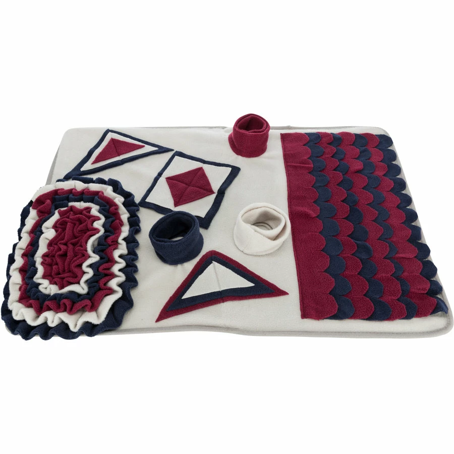 Deze snuffelmat is te gebruiken bij honden die te snel eten. De mat heeft verschillende uitdagingen en voorkomt schrokken. Ook kan het voor het verstrekken van het dagelijks droogvoer worden gebruikt. De mat bevat een uitneembare kunststof plaat die de mat in vorm houdt en een handleiding voor trainingen.