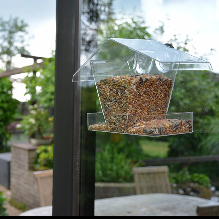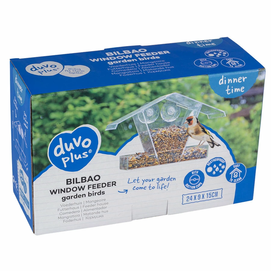 Haal de vogels in uw tuin met het Duvo+ Raamvoederhuis Bilbao.
