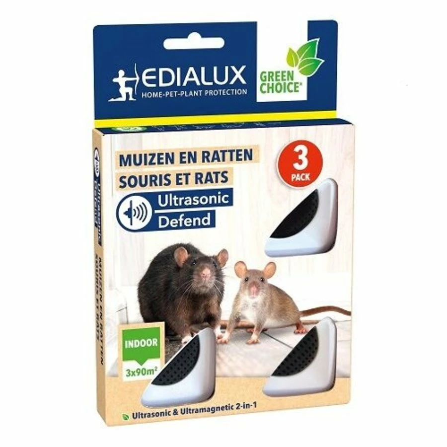Uw kamers ongedierte vrij met Edialux Muizen en ratten verjager 3 pack!