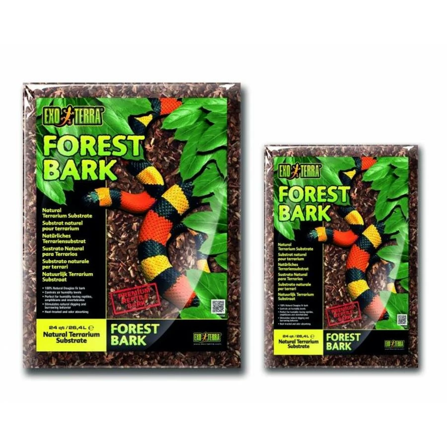 Exo Terra Forest Bark is een fijne bodembedekker van 100% natuurlijke Douglas sparrenschors. Dit substraat is perfect voor vochtminnende reptielen, amfibieën en ongewervelden en stimuleert het natuurlijke nest- en graafgedrag van de dieren. Daarnaast is deze bodembedekker hittebehandeld en geurabsorberend.