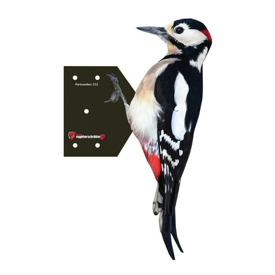 Met deze bonte specht voorkomt u de overlast van spechten. Het kan eenvoudig aan een boom of ander houten object worden bevestigd. Inclusief schroeven.