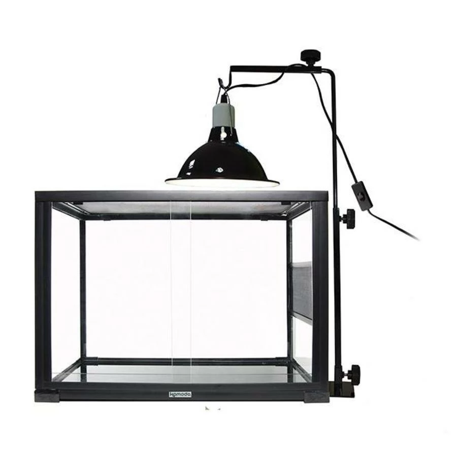 Met de Komodo licht standaard kunt uw reptiel gemakkelijk van een warmtebron voorzien. De onderste plaat van de standaard plaatst u onder het terrarium, zodat de standaard op zijn plek blijft. Daarna hangt u een lamp (niet meegeleverd) aan de standaard aan de lamphouder.