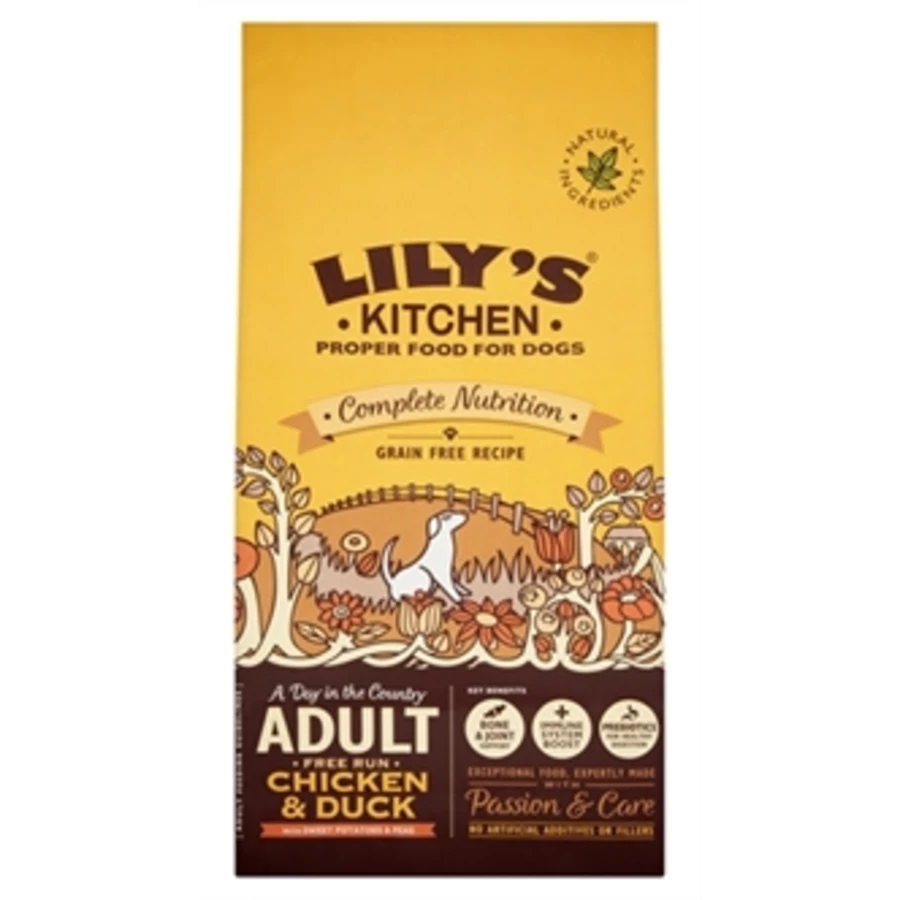 De Lily’s Kitchen Dog Adult Chicken Countryside Graanvrije, volledige diervoeding (droogvoer) voor de hond. Het bevat verse kip en eend, aangevuld met zalmolie, glucosamine en prebiotica. Met groente, fruit en kruiden, een volledig en zeer smakelijk voer voor jouw hond dus!