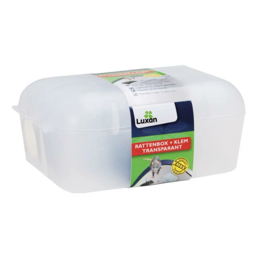 Klemmen zijn een eenvoudige manier om ratten te bestrijden op verschillende plaatsen. Ze zijn echter zeer krachtig en kunnen daardoor een gevaar vormen voor kinderen en huisdieren. Met de Rattenbox van Luxan gebruikt een rattenklem veilig door de grote voerdoos. Deze voerdoos is tevens transparant wat het controleren op vangst makkelijker maakt. De klem zit al in de doos en kan eenvoudig worden gespannen met de tiewrap die aan de klem vastzit en naar buiten loopt.
