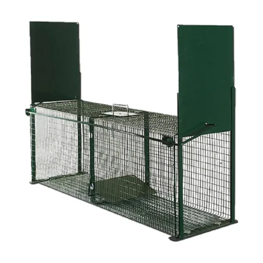 Deze vangkooi van Mecanix. Geschikt is voor het vangen van ratten en verschillende soorten marters waaronder de steenmarter, wezels, hermelijnen, beverratten, muskusratten, maar ook konijnen of dieren van gelijke grootte. De vangkooi beschikt over 2 deuren wat de vangkans aanzienlijk vergroot. De kooi wordt kant en klaar geleverd, u hoeft de kooi enkel nog op scherp te stellen.