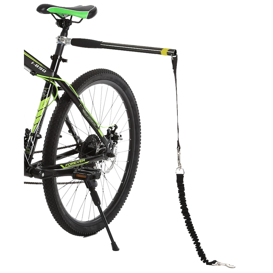 Uw hond kan nu gemakkelijk naast u lopen terwijl u fietst met de Doggy Bike Exerciser Leash. De riem is eenvoudig aan uw zadelpen van uw fiets te bevestigen. Deze set word geleverd met een lijn die onverwachte schokken kan opvangen.