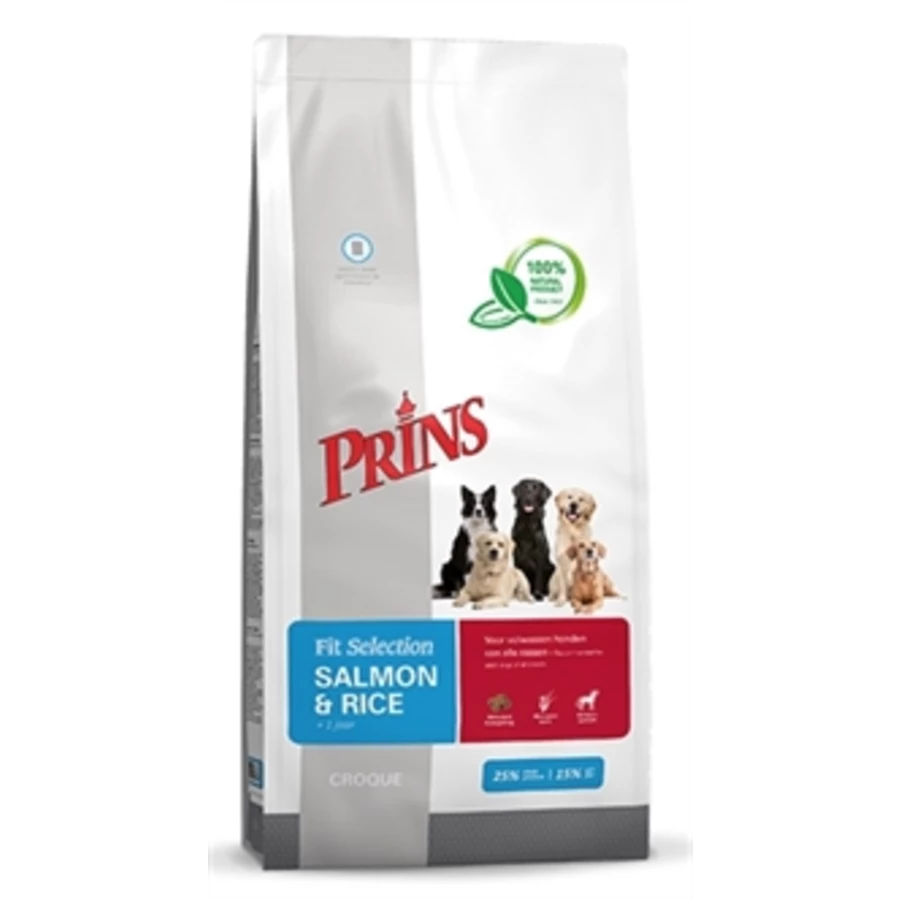 Fit Selection ZALM & RIJST is een complete gezonde voeding ideaal voor de familiehond. Hoogwaardige ingrediënten als zalm, kip en rijst hebben een hoge mate van verteerbaarheid en houden uw hond in optimale conditie. De voeding bevat hoogwaardige vetten als zalmolie welke rijk zijn aan omega 3 & 6 vetzuren ter ondersteuning van een mooie en glanzende vacht.