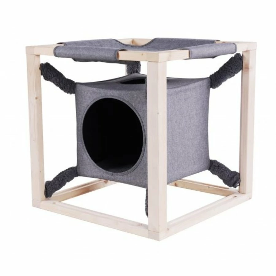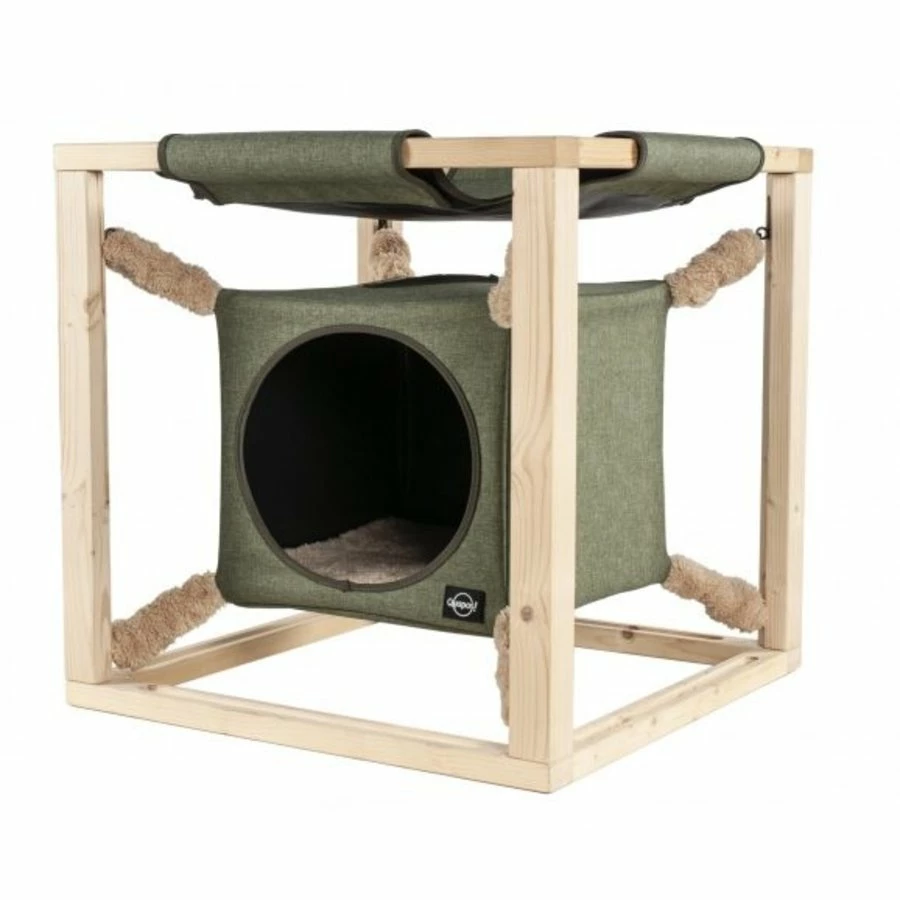 Deze catcube is de kattenkubus waar uw kat een heerlijk beschut plekje in de kamer heeft. Uw kat heeft de keus voor een heerlijk beschut plekje in de kubus of juist boven in de hangmat met uitzicht over de kamer.