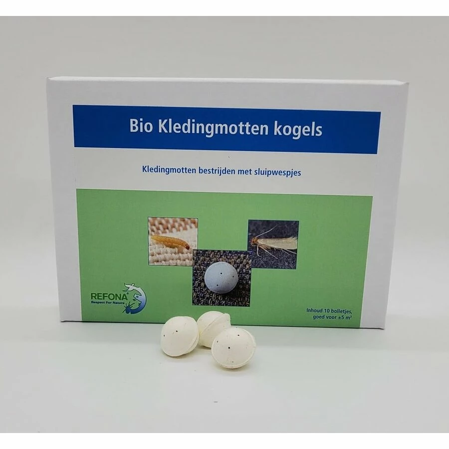 Zodra er motjes worden aangetroffen of zodra de eerste spinseltjes worden gezien kunt u hele kleine sluipwespjes uitzetten, die de eieren van de motjes parasiteren en opeten. Op die manier komen de eitjes dus helemaal niet tot ontwikkeling! De sluipwespen zijn verpakt in kleine kartonnen bolletjes, die u eenvoudig in de kledingkast kunt neerleggen. De sluipwespen komen dan door kleine gaatjes naar buiten en gaan direct op zoek naar de eitjes. Ze zijn heel klein en met het blote oog bijna niet te zien. De cyclus van deze motjes is ongeveer 12 weken. Daarom is het noodzakelijk deze balletjes enkele keren met een tussentijd van 3 weken uit te zetten. Als u dit niet doet zullen er motjes overblijven en zal het probleem zich opnieuw kunnen ontwikkelen.