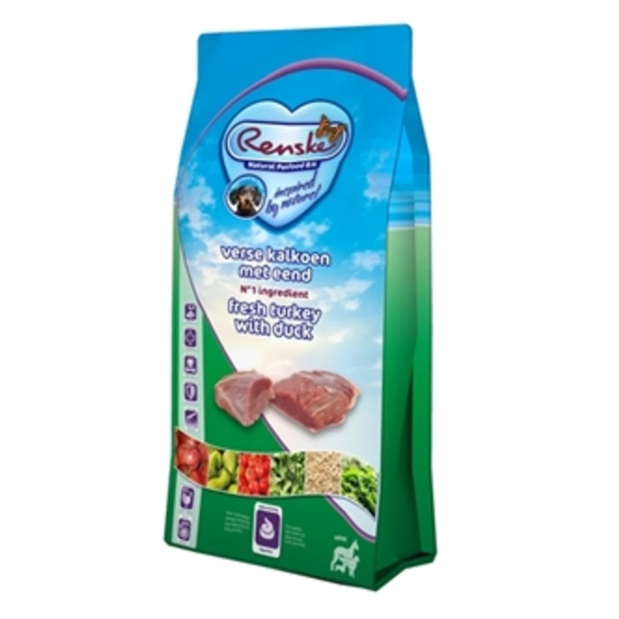 Een complete voeding met verse kalkoen & eend voor de hond.