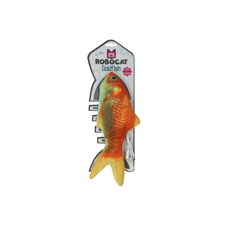 De eerste goudvis die echt tot leven komt, en dat ook nog eens als een speeltje voor de kat!