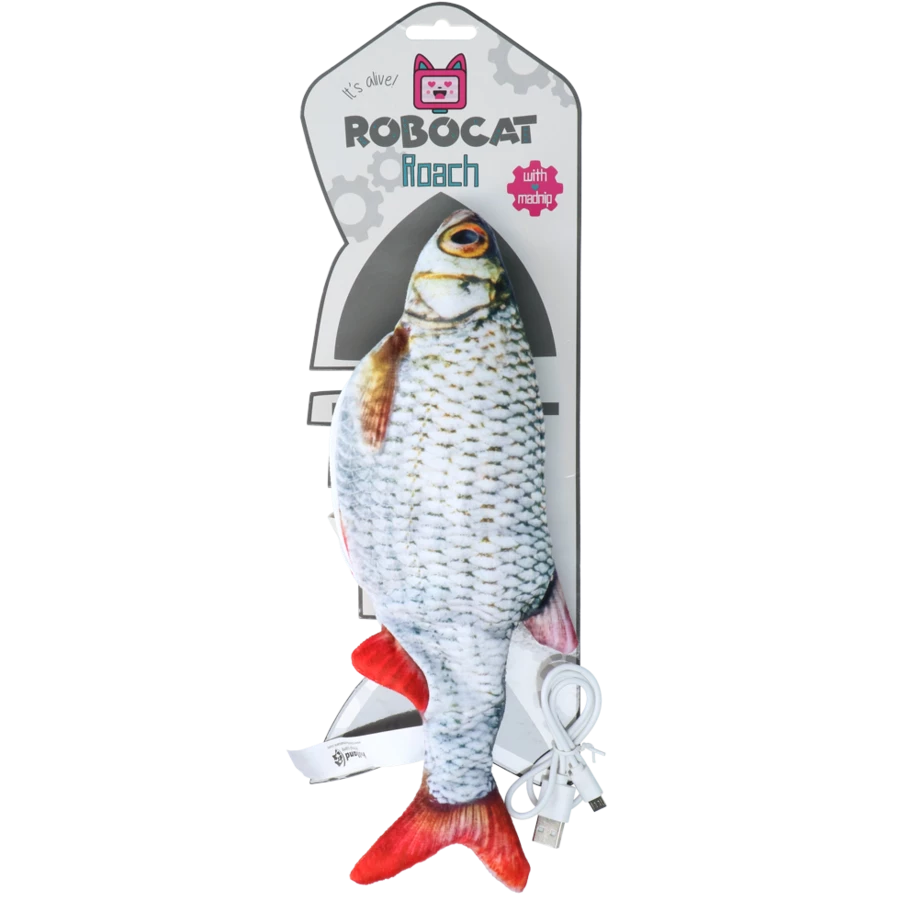 De eerste voorn die echt tot leven komt, en dat ook nog eens als een speeltje voor de kat!