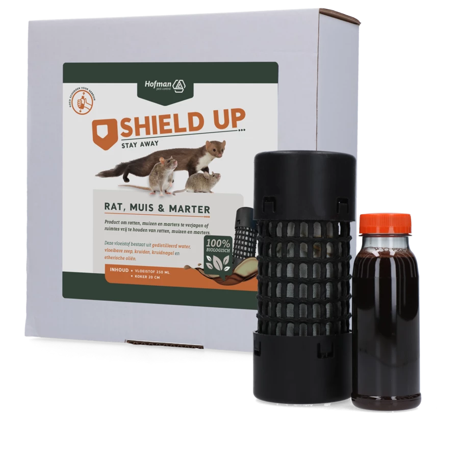 Houdt het ongedierte weg met de Shield Up Stay Away Rat/Muis/Marter Set.