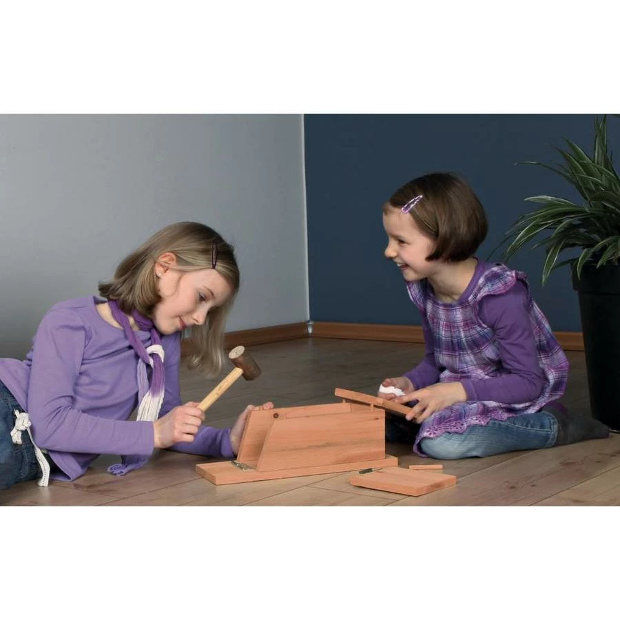 Compleet bouwpakket om een nestkastje te bouwen. Bestaat uit onderdelen van onbehandeld hout, met landingsstokje. Het deksel is opklapbaar, waardoor het nestkastje gemakkelijk schoon te maken is. Wordt geleverd met een duidelijke handleiding en een kindvriendelijke houten hamer. Dus zeer geschikt om door kinderen (vanaf 6 jaar) in elkaar te laten zetten.