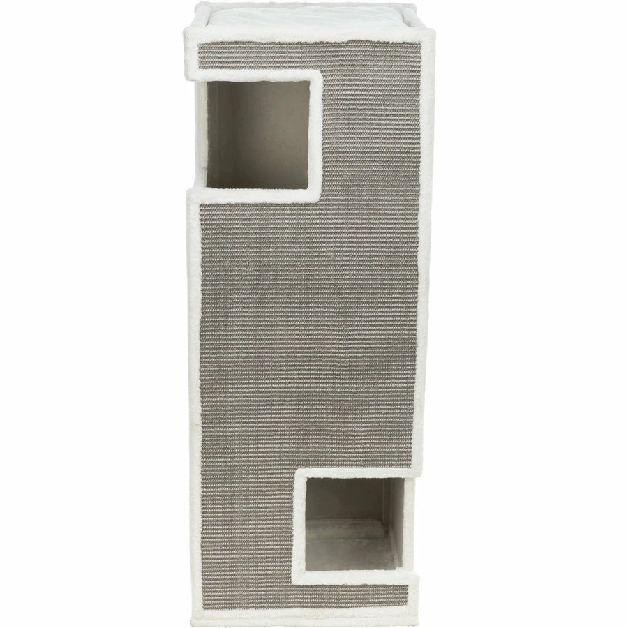 Cat Tower Gerardo is een toren waar uw kat zijn/haar nagels in kan zetten. Deze toren heeft schuilplaatsen met fleece (polyester) binnenin en 2 wendbare kussens welke met de hand te wassen zijn. Daarnaast bevat de toren 2 zijden met sisal krabvlakken. De toren is gemaakt van sisal/pluche (polyester): 280 g/m².