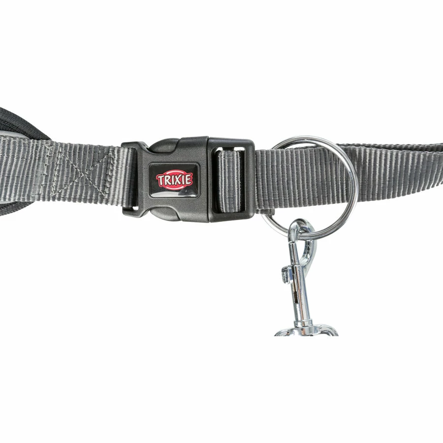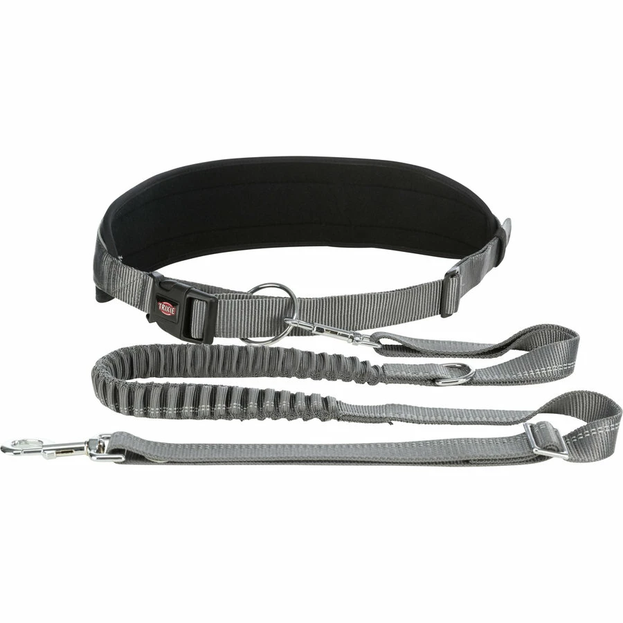 Grijze Heupriem met Lijn voor middelgrote en grote Honden is een comfortabele manier om met uw hond te joggen. Deze heupriem heeft een gesp met trekontlasting en vangt plotseling trekken van de hond op door de schokdempers. Daarnaast heeft het een aangenaam draagcomfort dankzij brede neopreen voering en reflecterende elementen waardoor u ook in het donker te spotten bent. Met een traploos verstelbare riem met handlus, waardoor ook voor het normale meevoeren geschikt. De riem is gemaakt met een singelband.
