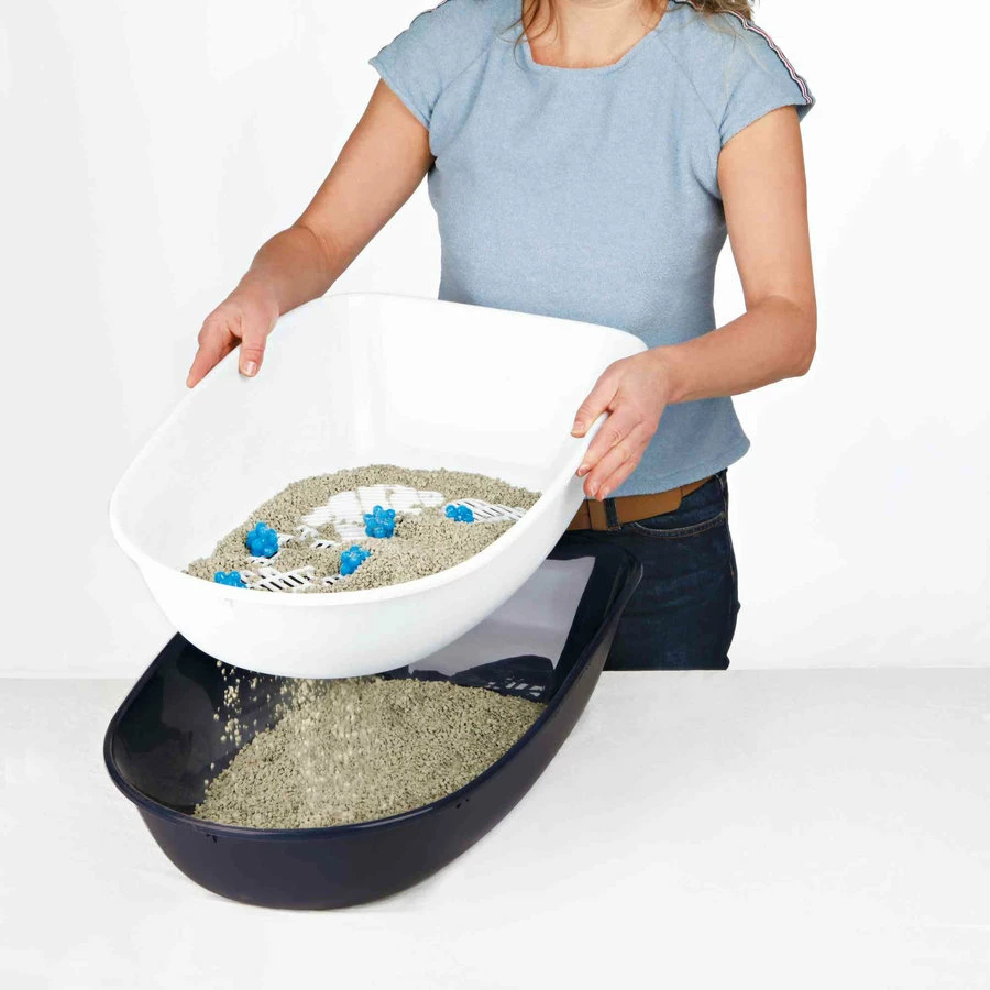 Kattenbak Berto is een 3-delig kattenbak met hygiënisch scheidingssysteem en easy-Click sluitingen. Bestaat uit 2 bakken en 1 zeef voor snel en eenvoudig verschonen van de kattenbak. Verkrijgbaar in 2 kleuren en gemaakt van kunststof.