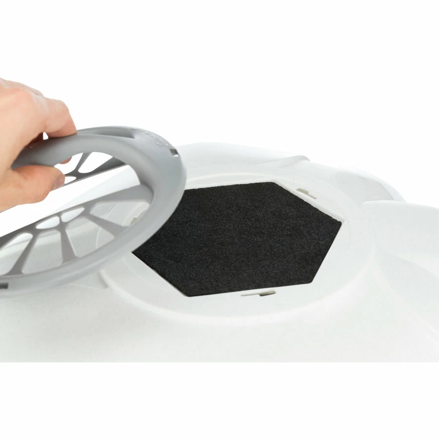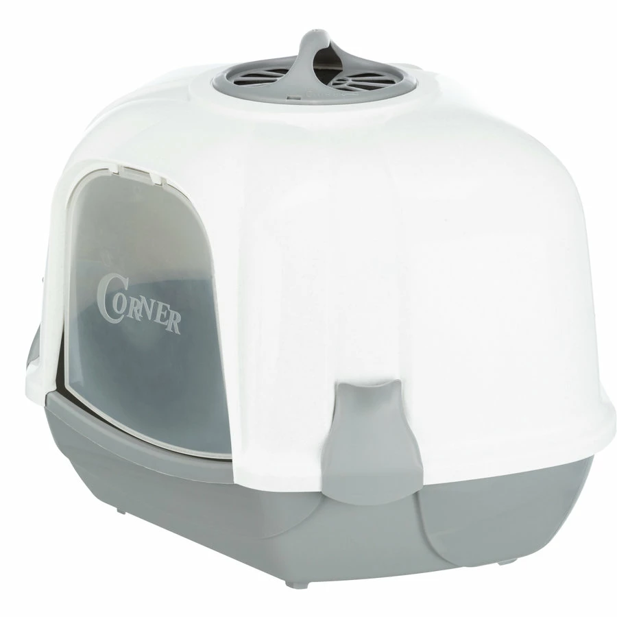 De Kattenbak Maro Hoekmodel met een kap zodat de kattenbakvulling minder snel kan ontsnappen. Bij deze kattenbak word een schepje geleverd. Met filter van actieve koolstof en easy-click sluitingen. De bak is gemaakt van kunststof.
