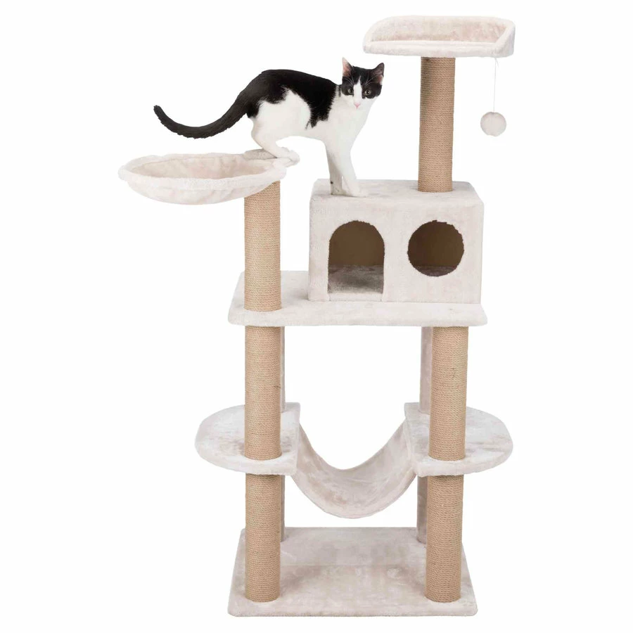 De krabpaal met een heerlijke hangmat waar katten kunnen uitrusten