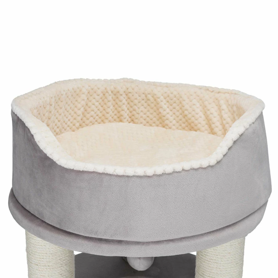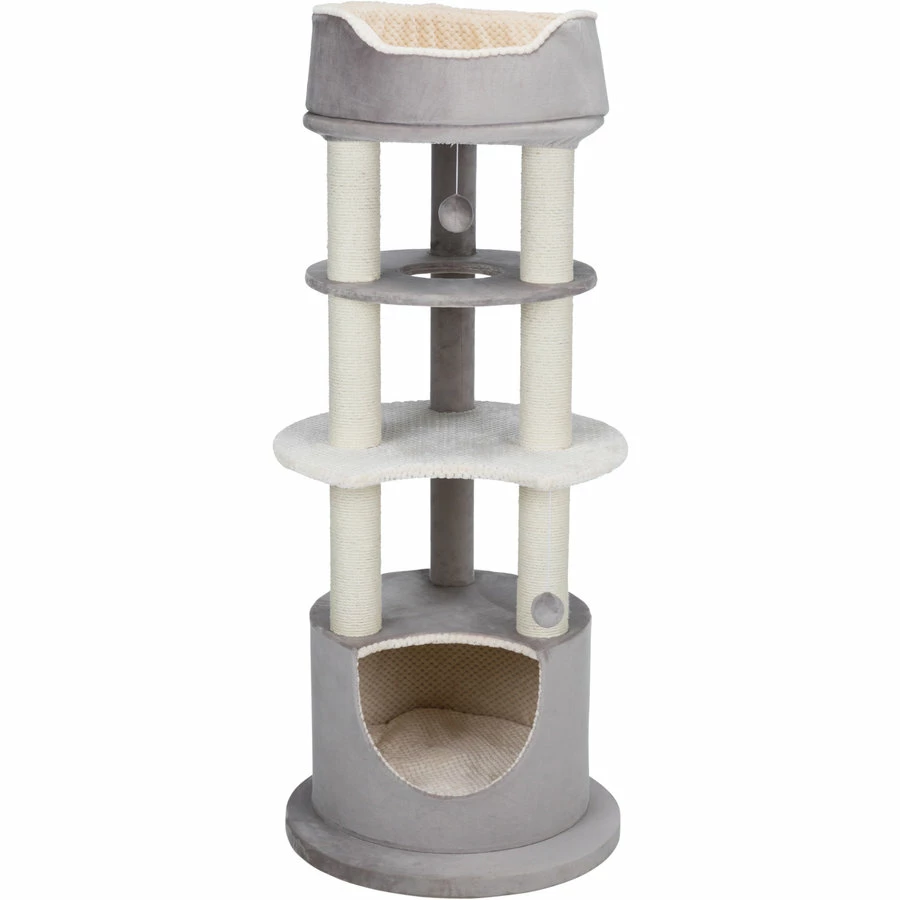 Krabpaal Lavinia is een krabpaal gemaakt met verschillende verdiepingen waarop uw kat kan klimmeb. Een ligplateau heeft een afneembare relax-mand welke met de hand te wassen is. De schuilplaats heeft binnenin een zachte structuur pluche (polyester) en 2 wendbare kussens. Deze krabpaal is gemaakt met jute: ø 6 mm/zacht structuur pluche (polyester): 280 g/m².