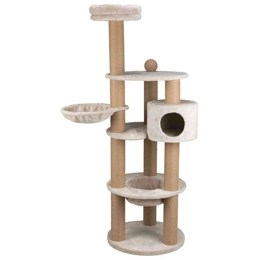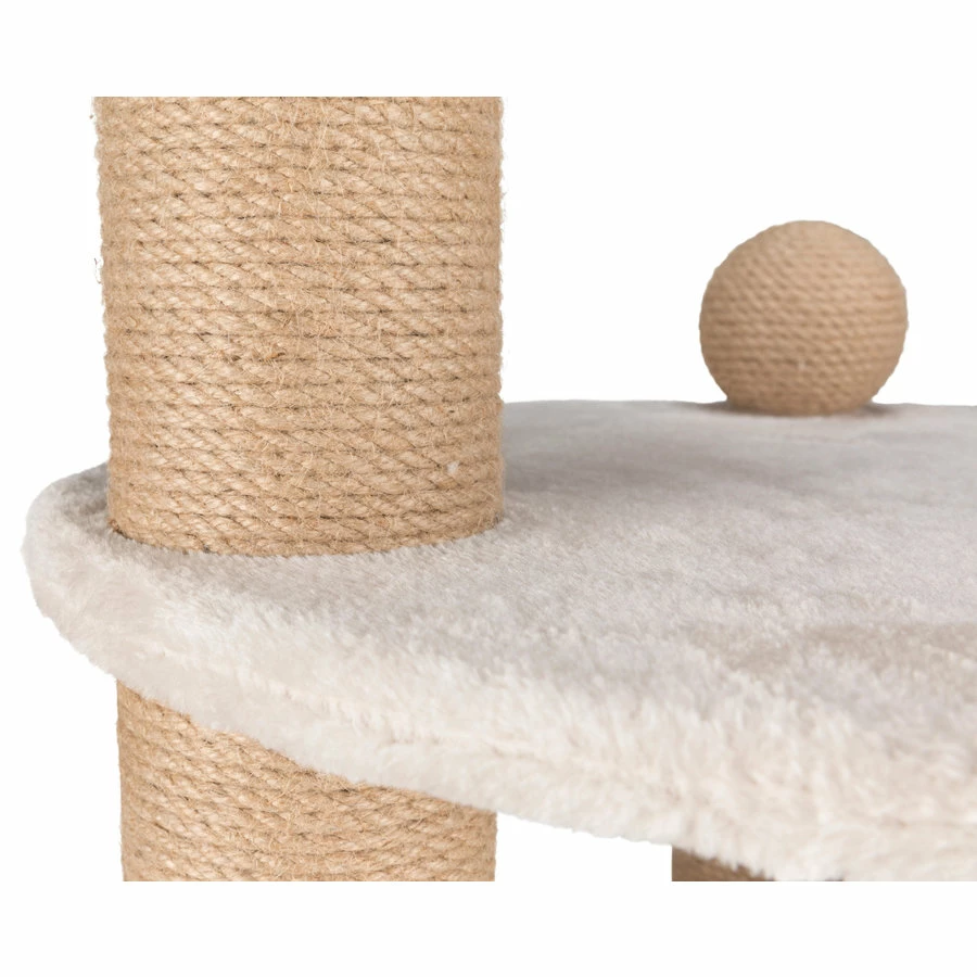 Deze krabpaal Nigella is een grote krabpaal voor katten die houden van klimmen. De krabpaal bevat een schuilplaats met pluche (polyester) binnenin. Er zijn verschillende beklede ligplateaus en 1 ervan heeft een afneembare relax-mand. Deze mand is met de hand te wassen. De paal is gemaakt met jute: ø 6 mm/pluche (polyester): 280 g/m².