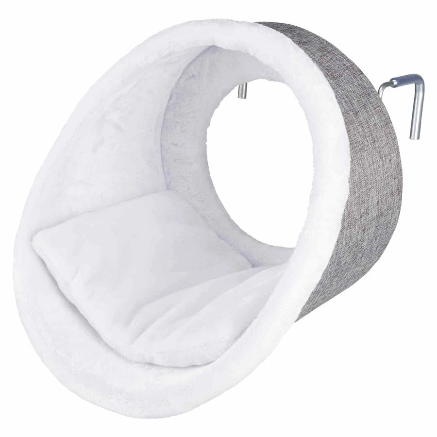 Schuilplaats voor radiatoren biedt uw kat een warme plek om op uit te rusten. Makkelijk te plaatsen op de meest gangbare radiatoren. De mand bevat verstelbare beugels (9–11 cm) en is gemaakt van korthaar pluche bekleding (polyester). Daarnaast bevat de schuilplaats een wendbaar kussen met polyestervlies vulling.