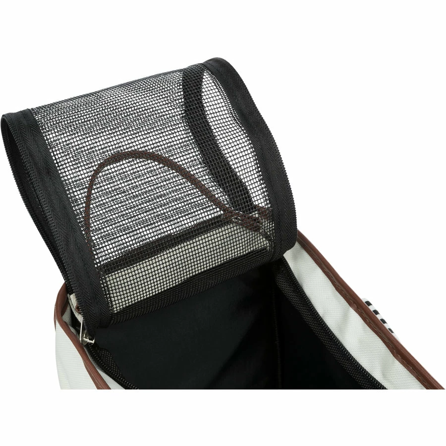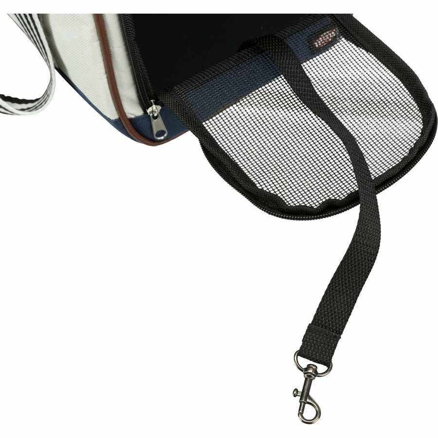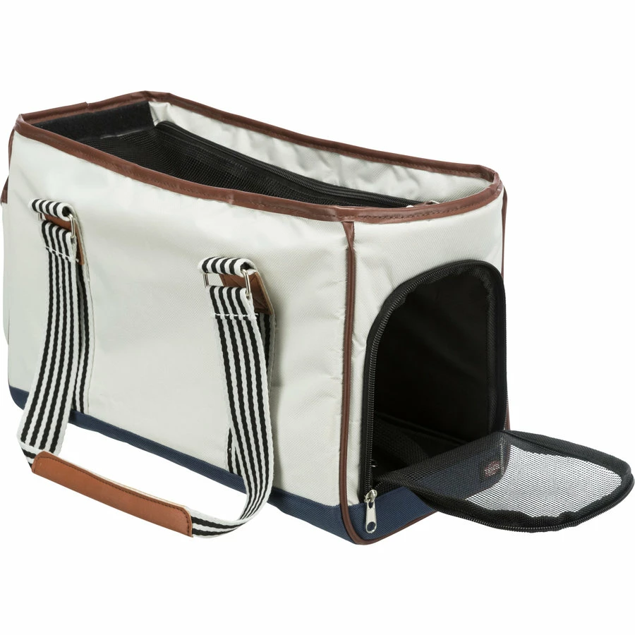 Tas Elisa is een stijlvolle tas waarin u uw kat mee kunt nemen onderweg. De tas is aan de boven- en voorkant te openen. Daarnaast bevat het buitenvakken en geïntegreerde korthouder. De tas is gemaakt met een canvas look met kunstleer (polyester) afgezet. En om uw kat niet koud te laten worden is de tas ook gevoerd.