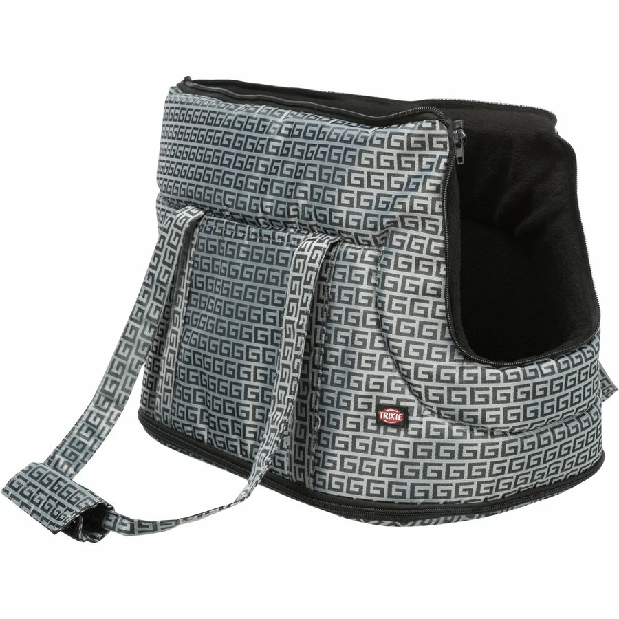 Tas Riva waarmee uw kat warm en comfortabel met u mee reist. De gevoerde tas is aan bovenkant te openen en bevat een gaas-inzetstuk met ritssluiting aan de voorkant. De tas bevat een buitenvak, geïntegreerde korthouder en afneembare schouderriem. De tas is gemaakt met een jacquard print (polyester) en heeft een binnenvoering van fleece.