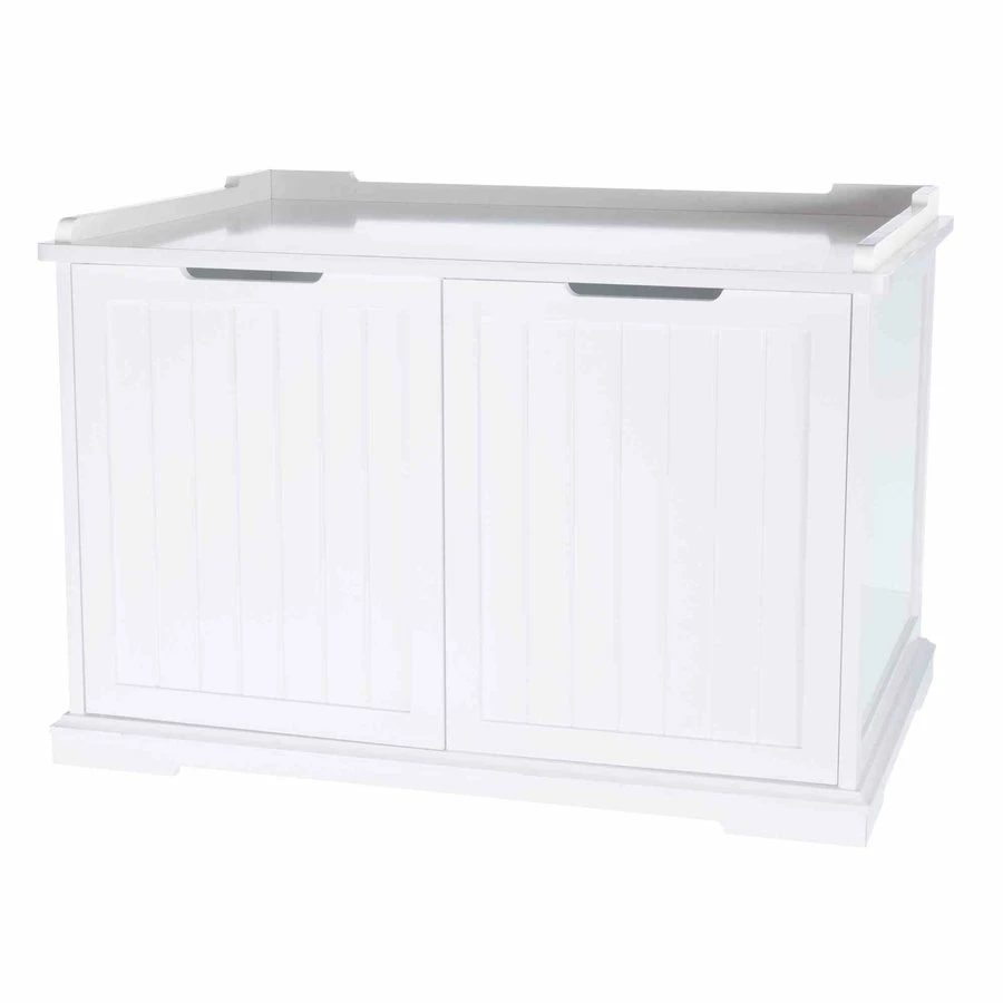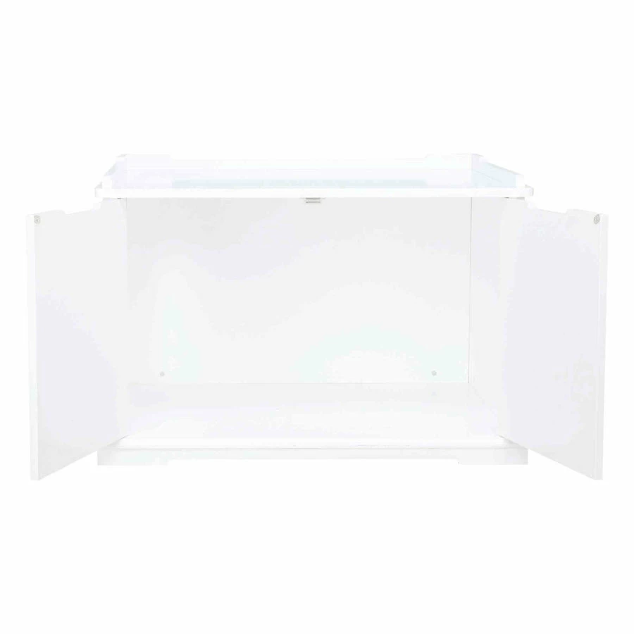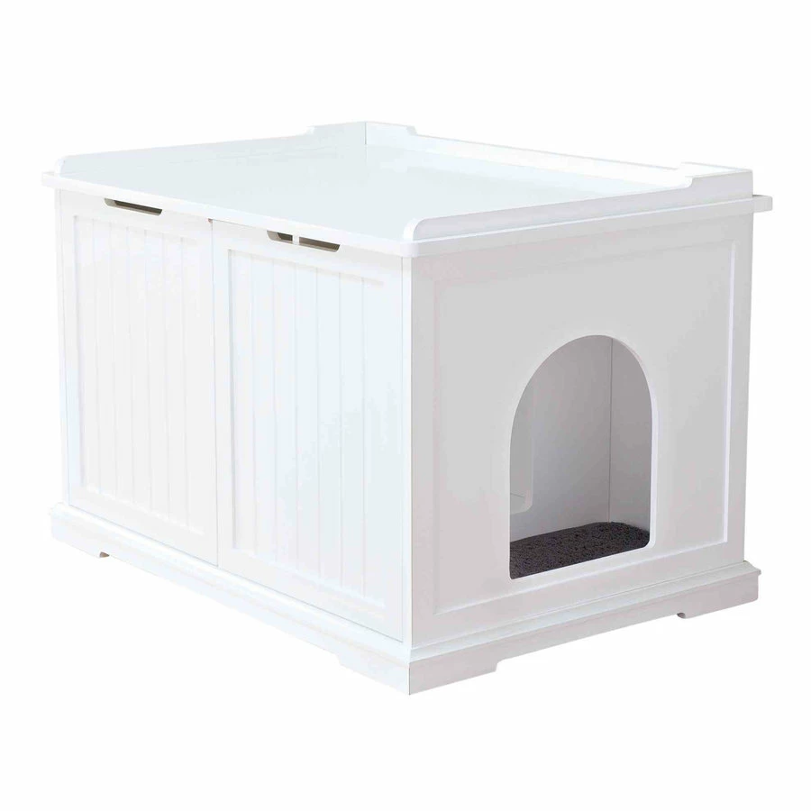 Dit witte kattenhuis is ideaal voor het verbergen van de kattenbak en houdt de kattenbakvulling binnenboord. Daarnaast bevat het een schoonloopmat voor de kattenbak. Het meubel is ook te gebruiken als slaaphuis. De ingangsopening kan naar keuze naar boven of naar onderen gericht worden. De ingang kan naar keuze links of rechts worden gemonteerd. De deur bevat een magneetsluiting en het meubelstuk is MDF, gelakt. Bovenblad heeft een draagvermogen van max. 90 kg.