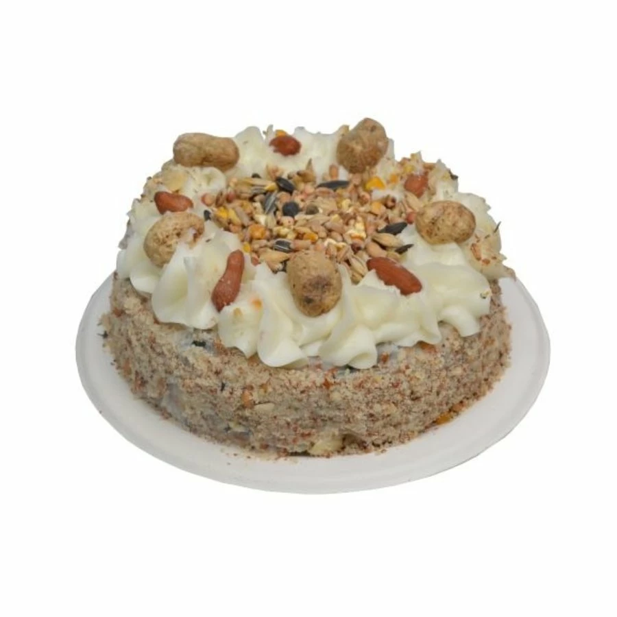 Lekker kleine naturel slagroomtaart met zaden voor de vogels waar ze lekker van kunnen eten in je tuin. Op de taart zitten allerlei soorten zaden waardoor het een feestje is voor de vogels en hier veel buitenvogels op af zullen komen. Hierdoor heb je straks allerlei verschillende soorten buitenvogels in je tuin.