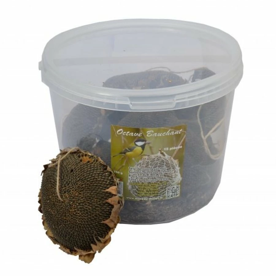 De zonnebloemkop is een heerlijke traktatie speciaal gemaakt voor tuinvogels!